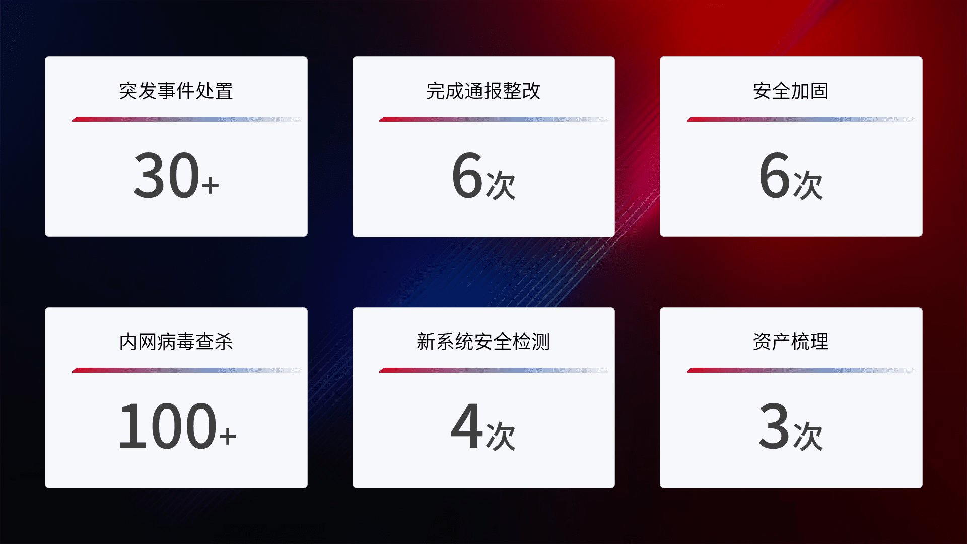 网络安全加固与风险管理:通过技术加固手段,,,如加强区域隔离,,缩减攻击内网横向移动的范围;优化现有网络安全管理制度,,,,降低网络威胁暴露面,,减少被黑客攻击的可能性。。